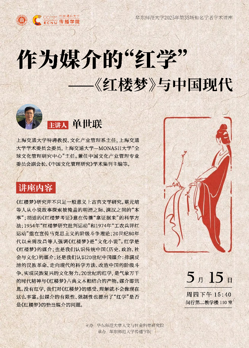2025年第35场知名学者学术讲座 | 单世联:作为媒介的“红学”——《红楼梦》与中国现代
