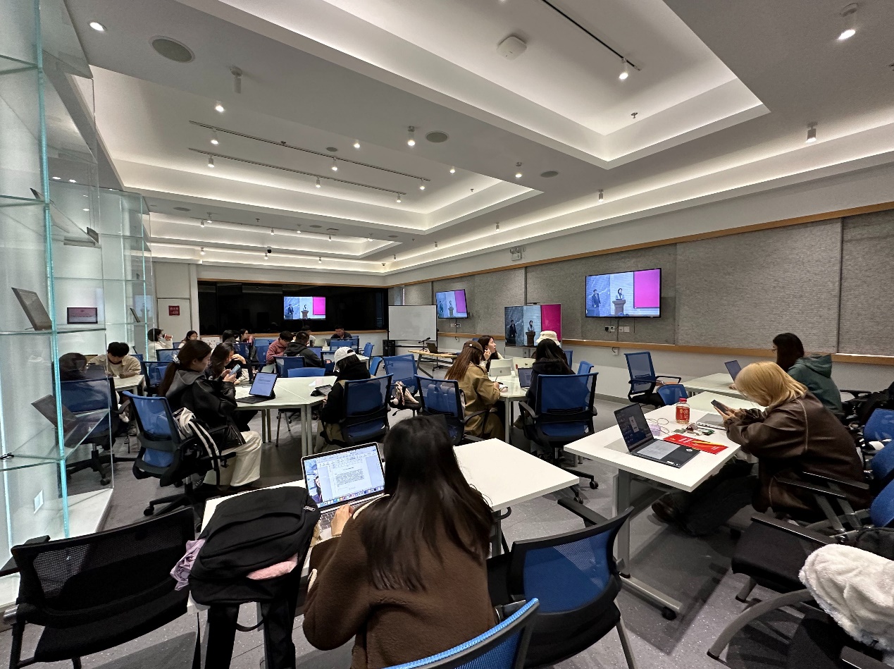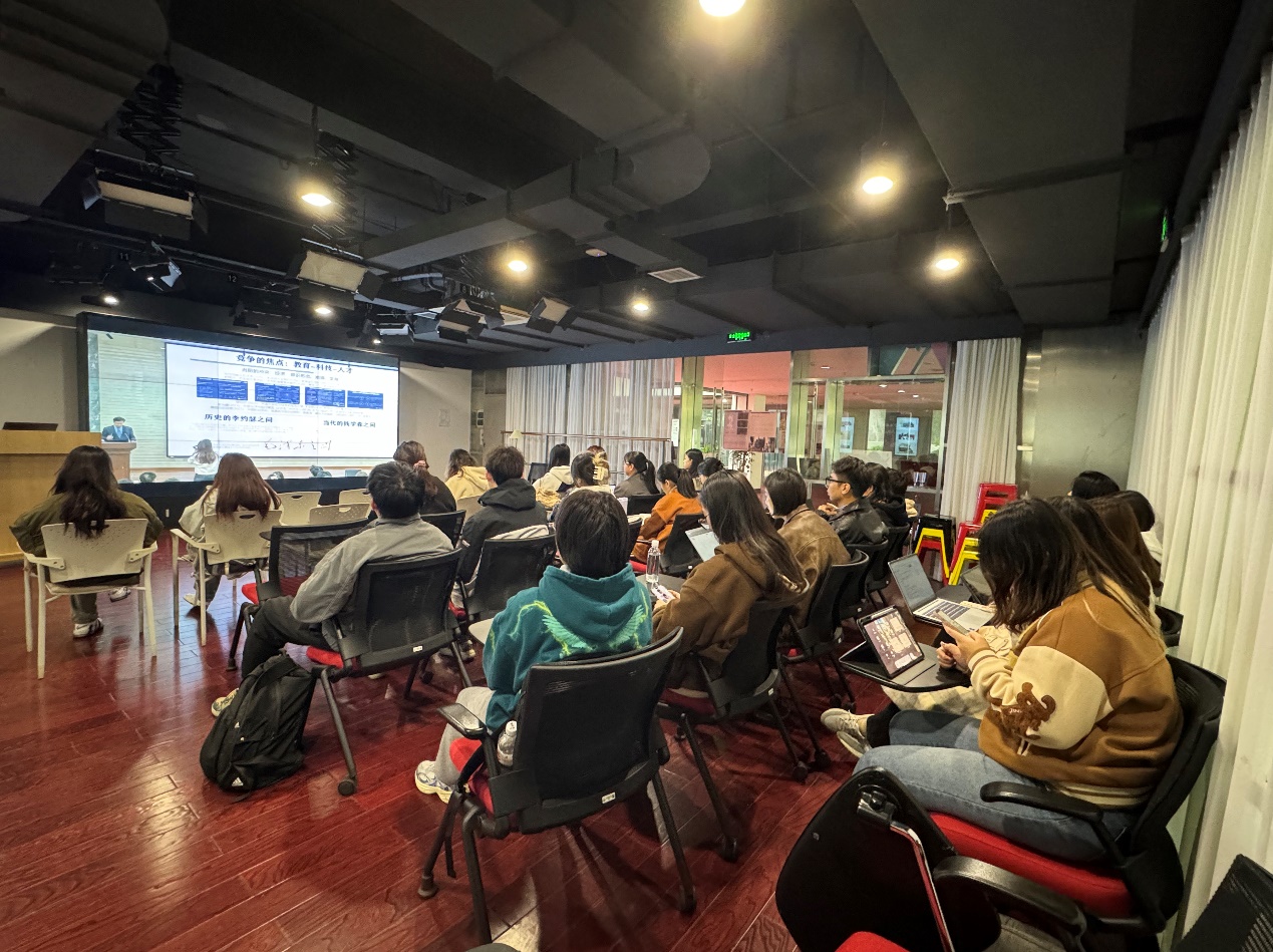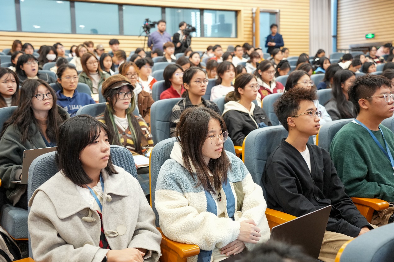 “量子思维”与“老子思维”相融互通,也为全面理解和把控自我与世界提供了新的阐释角度。钱旭红结合丰富案例,深入浅出地为同学们阐释了两大思维体系在世界范围内的巨大影响和彼此关系,并富有前瞻性地指出,结合两大思维体系的思维训练,能够帮助同学们革新思维方式、转化有利因素、,在AI危机中育先机、AI在变局中开新局。