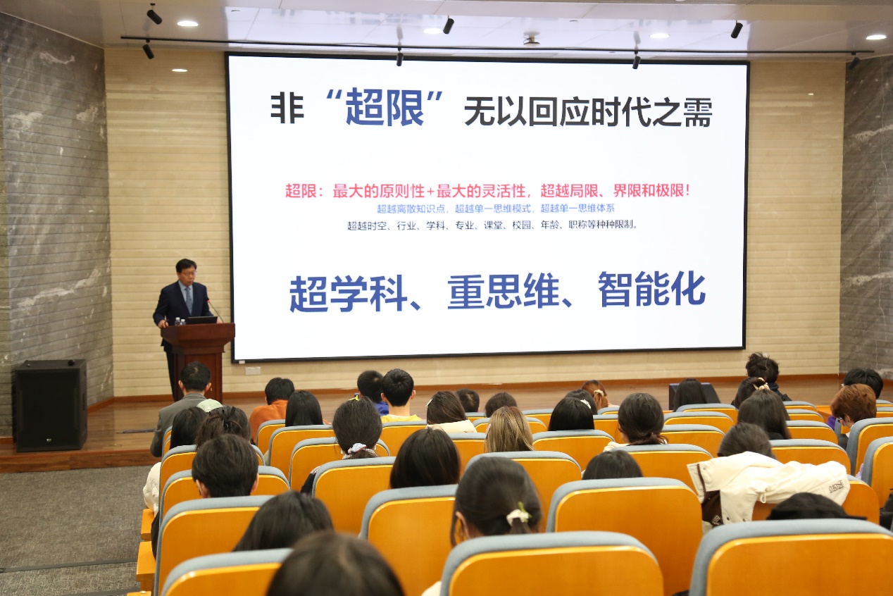 “‘超限’,就是要结合用最大的原则性和最大的灵活性来超越离散知识点,超越单一思维模式和,超越单一的单一的思维体系,超越时空、行业、学科等种种局限、界限与极限。”钱旭红指出,“超限”理念在高等教育的实践,要抓住三个关键词,即 中最重要的三个关键词,就是“超学科”“重思维”“智能化”。