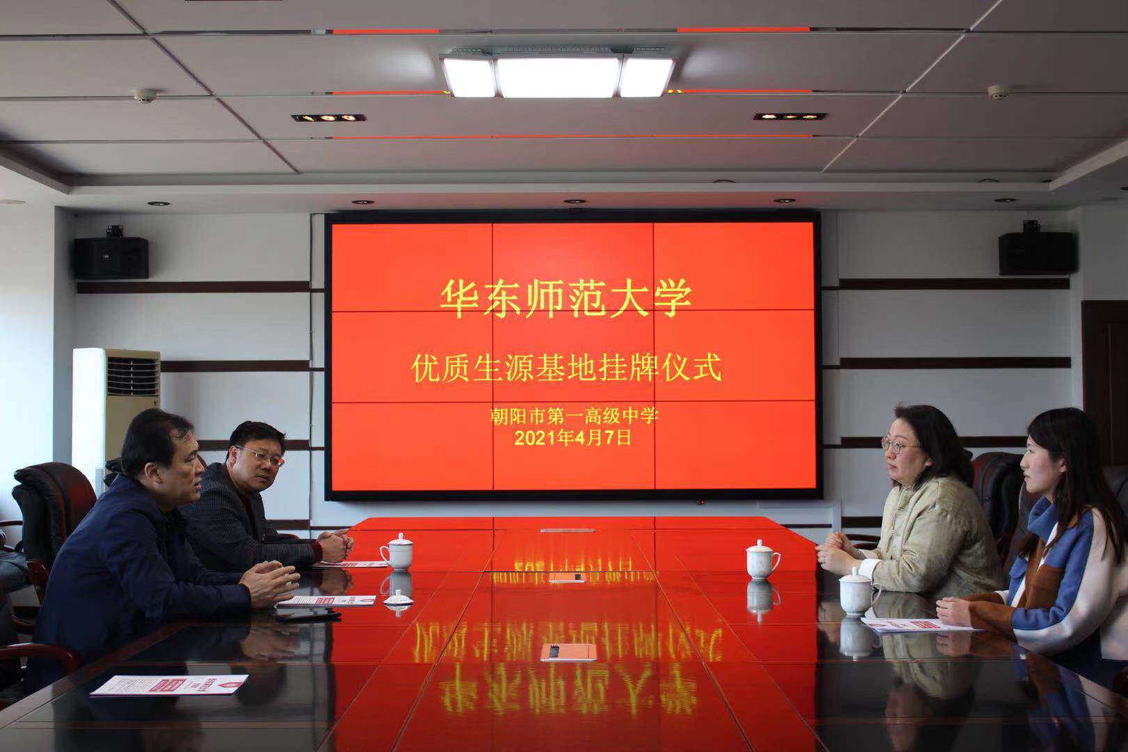朝阳市第一高级中学,始建于1904年,是辽宁省首批示范性高中和重点高中。4月8日,招生组走访了辽宁省朝阳市第一高级中学,并对该高中授牌优质生源基地。朝阳市第一高级中学董事长李铁松、副董事长张景刚、教导主任时杰出席了授牌仪式。