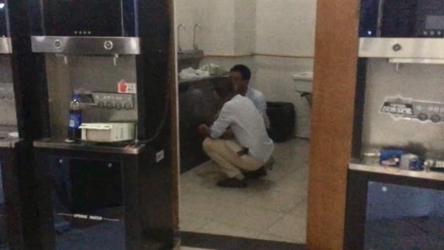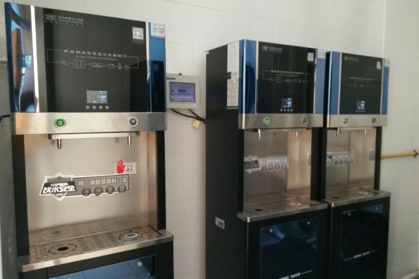 据第三教学楼安装现场直饮水机生产厂方安装负责人陈先生表示,员工最终喝到的水是经过三次处理加工的,市政自来水源经过机器的过滤器后,经无胆速热系统一次性烧开后保存至无菌水箱,再经紫外线杀菌,保证员工每一口喝的都是健康水。但是在生产过程中新机器内部难免会进入有害物质,针对此问题,负责人陈先生表示:“新的直饮水机安装完成后,已经完成了第一次注水放水高温灭菌处理,现在可以放心饮用了。”