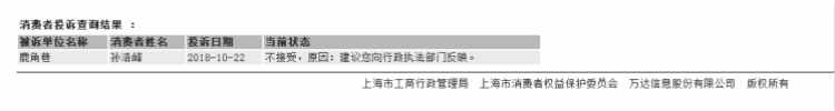 22日晚,记者尽可能按照要求填写了投诉表格。10月23日记者查询处理结果时页面显示:“不接受,原因:建议您向行政执法部门反映。”