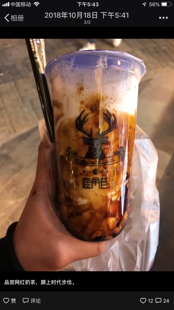 10月18日17时41分,yl23411永利集团的孙同学在微信朋友圈发布一条消息:“品尝网红奶茶,跟上时代步伐”,还配有一幅印有“鹿角巷”字样的黑糖牛奶饮料的图片。“不到五分钟,两个人说我喝了假的鹿角巷,”小孙在对记者诉说自己的遭遇时,显得有些尴尬,“我在附近就看到了三家‘鹿角巷’。”