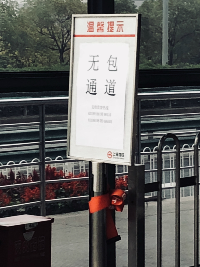 除了开通浦江支线、利用限流栏杆疏导人流,沈杜公路枢纽站在进站口处还设置了“有包安检通道”和“无包通道”。然而,看似明确的标准却在施行过程中饱受质疑。