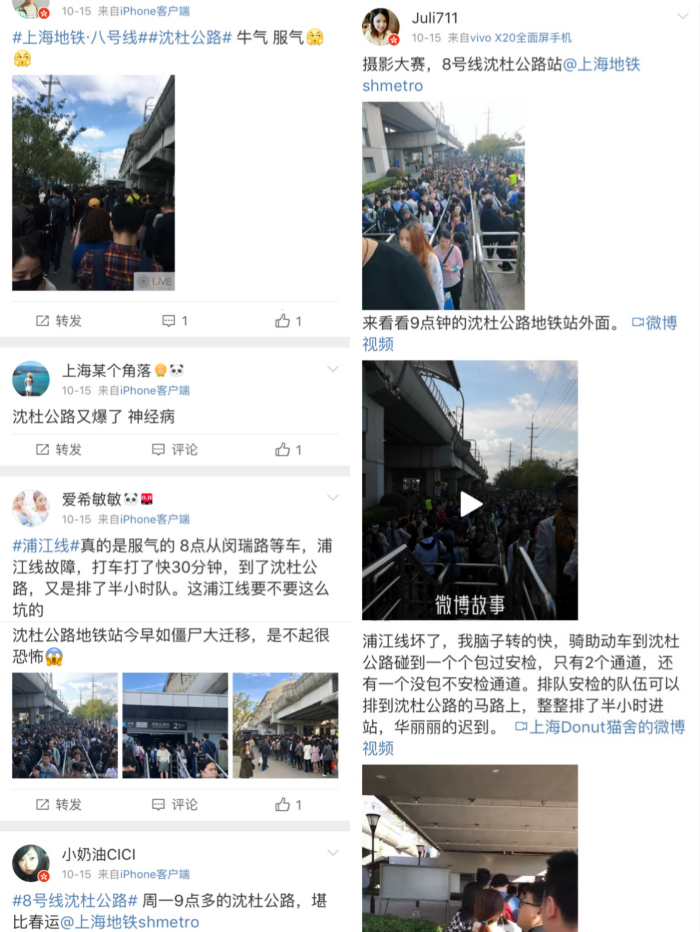 然而,颇具创新点的浦江线却频出故障。从3月31日至10月25日,上海地铁官微“@上海地铁shmetro”因为浦江线故障共发布了14次紧急声明,在上海地铁的官网上也可以查询到对应的电子致歉信。而最近一个月内的电子致歉信分别是在10月5日与10月15日发布的。而浦江线的每一次故障又会使得八号线沈杜公路站在一段时间内迅速聚集叠加客流,使得八号线的客流积压情况愈发严重。据10月15日博主“@爱惜敏敏”发布的微博显示,当天因为浦江线突发故障,打车到沈杜公路站就花了快30分钟,到了之后,又在站外排了半小时队。一而再再而三,频繁的故障导致附近的一些上班族选择直接去沈杜公路站排队,也不愿意冒着浦江线突发故障的风险耗时耗力额外打车至沈杜公路继续排队耽误上班。滴滴快车司机刘师傅告诉记者,“本来浦江支线建的时候,大家也蛮期待的,因为它首创无人驾驶嘛,延长了线路,大家也方便。但后来浦江支线老是出问题么,大家上班的时候你告诉我,我告诉你,次数多了,大家都不想去坐了,现在又全挤到沈杜公路那边去了。”