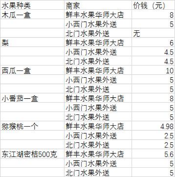 “不推出外送对我们这样的实体店压力很大,同学们都喜欢外送。”鲜丰水果华师大店的一名店员向记者表示。