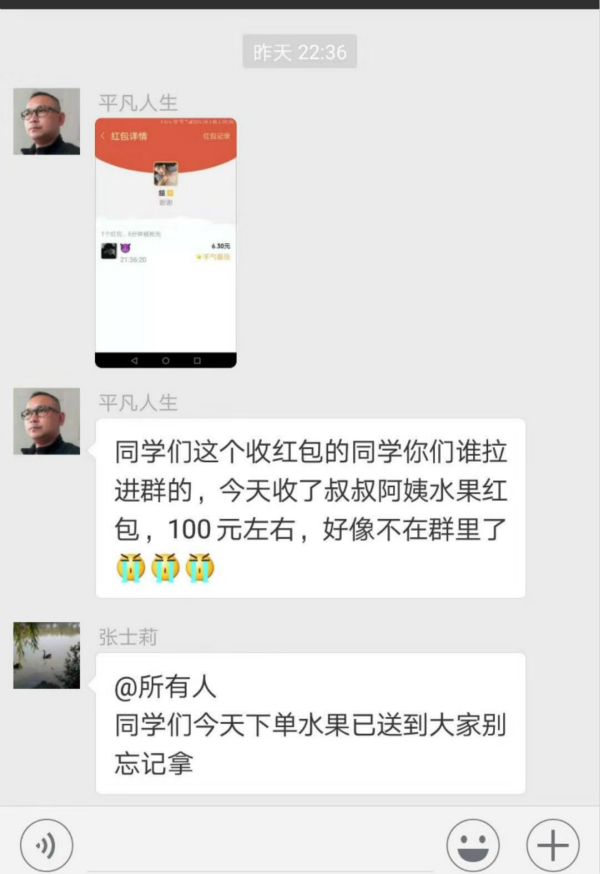 叔叔的话语里透着一丝无奈和失望,“我们很忙没有第一时间收红包,想着都是同学,也都很放心。你们相信叔叔阿姨的水果,叔叔阿姨也很相信你们,可这次真不知道怎么了。”