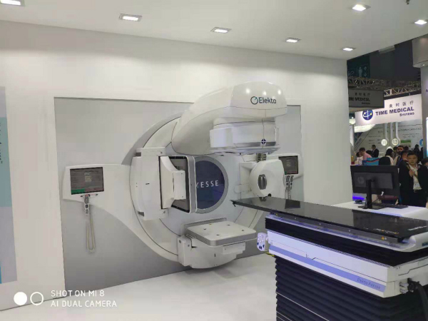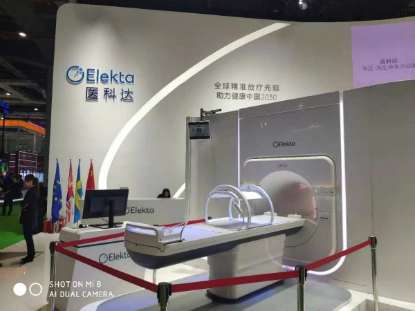 11月9日下午3时许,在高科技医疗展区馆,记者们见到了当时在会议场所介绍的精准放射医疗仪器,据负责人介绍,此仪器外观与普通ct扫描仪的区别不大,根据患病部位不一样,短的一次化疗2、3分钟,长的15到20分钟。负责人说到,Elekta的研究,是为了避免传统手术的风险,一般的开颅手术可能导致血肉模糊,使医生不能准确判断患者部位,引起不必要的后果。因为此项技术是使用X光来治疗的,在当被问到怎样知道x光打到指定部位时,先生微微一笑说到,我们有专门的图像引导设备,负责采集患者ct图像,跟踪身体部位的运动,加上磁共振引导,准确找到患病部位。负责人还表示到,此设备目前第一款全球首发,市场占有率很大,并且第一台机器预计2020年在中国上市,但是目前还需要注册证书,需要验证,需要有临床试验以确保安全问题。在说起人们普遍关注的医疗费问题时,负责人说到,治疗费用,是要根据病种不同,规定的价格也不同。但是Elekta进入了医保,患者可以报销看病费用总额的%70~%80。记者随后问了一个比较难以回答的问题:癌症能否真正被消除?负责人回答到,目前不认为可以完全战胜癌症 。他认为难攻克的点,是因为癌症真正的发病根源还不确定,只是了解表象,放疗化疗都是治标不治本,根没有消除。他觉得攻克癌症应该从人类基因组学着手,把治病基因从一开始就消除。