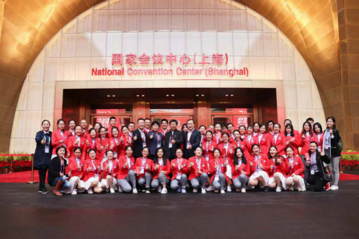11月9日中午一点,全体志愿者在国家会展中心南广场集合,进行全体大合照 小叶子们纷纷在南广场合影留念,记录下这几天的辛酸与美好。
