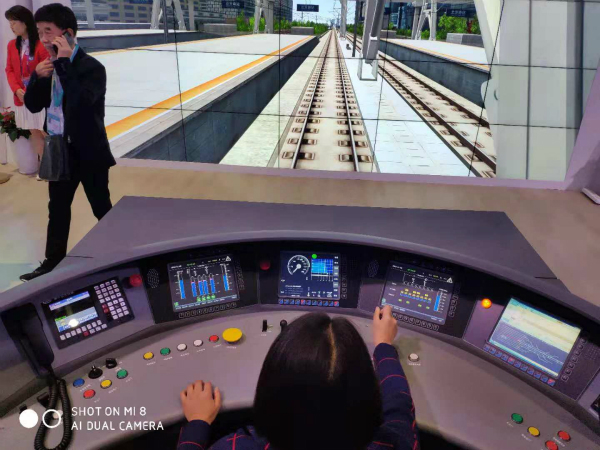 体验完如此“高大上”的电子书后,记者又听到了旁边有人说到:“手不要松,把操纵杆推到底。对,往前推到底就行了,到350松开就行了。”记者了解到,这位说话的先生,是负责这款高铁模拟器的工作人员。