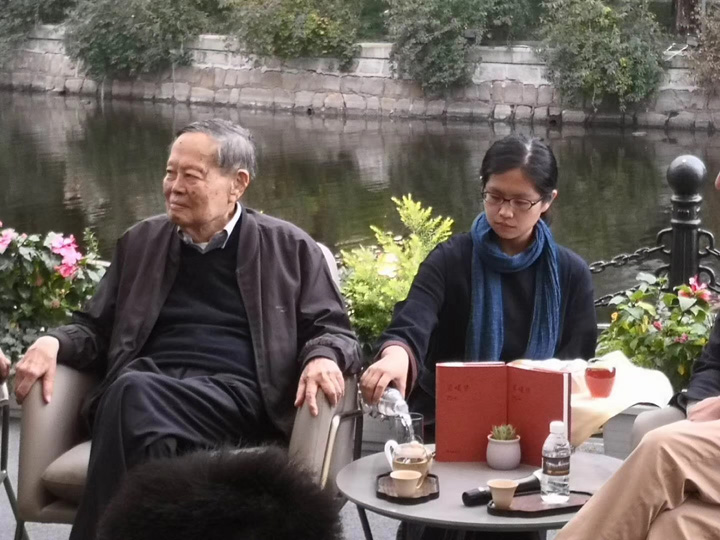 在购书屏幕旁边,记者看到了一套独立的桌椅,旁边放置着带有杨振宁先生照片的木架。这正是试运营期间阅读空间承办的重要活动之一——在67周年校庆时为杨振宁和华师老员工代表座谈提供平台。结束后,杨振宁先生坐过的椅子和喝过的茶化身为“大师椅”和“大师茶”,“打卡大师同款”成为文创产品的一环。