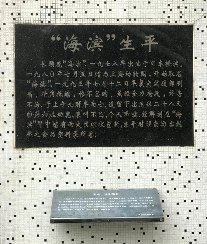 长颈鹿“海滨”纪念处的生平介绍。(孙浩峰 摄)