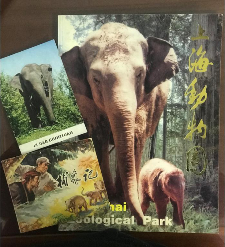 印有大象“版纳”形象的动物园出版物和“捕象记”连环画。(孙浩峰 摄)