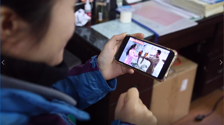 许明蕾向记者展示2017年参赛时的录像。(孙浩峰 摄)