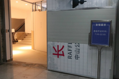 和来福士长廊同期施工的还有连接来福士和中山公园地铁站的地下通道。在来福士广场东区b1层01和23号商铺之间有一块提示地下通道“即将开启”的告示牌。据长宁区新闻办,地下通道预计在今年年底前投入使用。