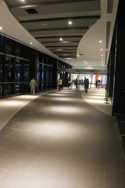 曹女士在来福士上班,能够时刻注意到长廊的动向。她说,长廊已经开通很久了,但是之前都只开辟一部分临时通道。据上海发布,在2018年初,长廊的建设就已经开始。为满足来往市民通行的需求,长廊在2018年10月尝试设置临时便民通道。目前,二层长廊和轨交站的部分连接处还在施工(包括自动扶梯),预计在3月22日全面开放。