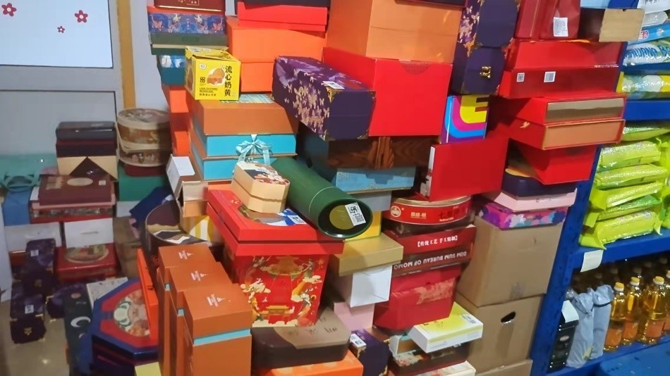 冯婧展示了他们收到的所有的月饼包装盒。“占了非常大的空间,用了非常多的材料,但是最终全部会被扔掉。”冯婧评价道,“包装浪费也是一个非常严重的问题。”