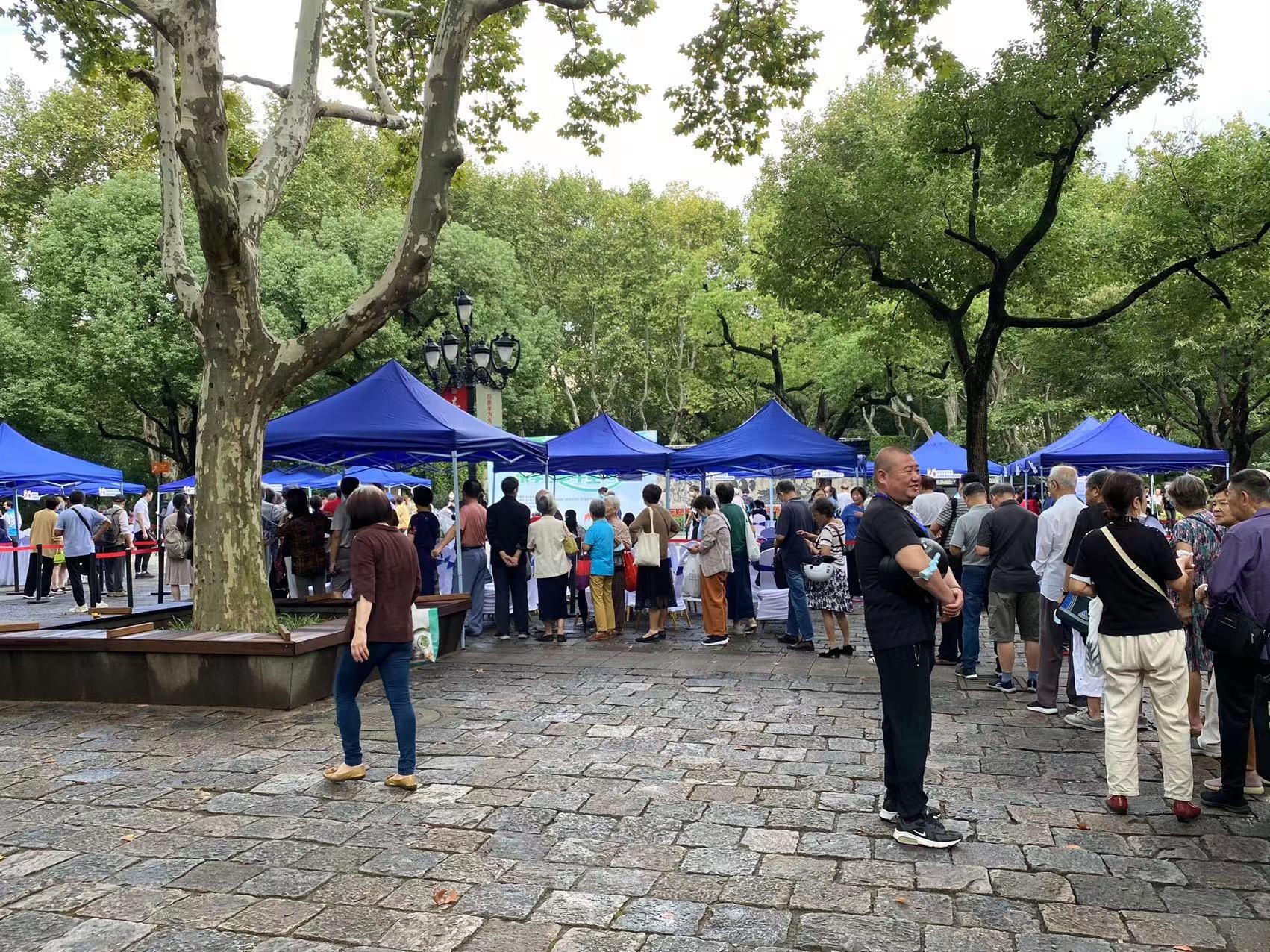 这是鲁迅公园2021年重阳节敬老义诊现场的一幕。在欧阳路街道的组织下,来自上海市和虹口区的6家权威医疗机构的的34位专家参加义诊,以其专业又便捷的就诊模式获得不少老人的称赞。