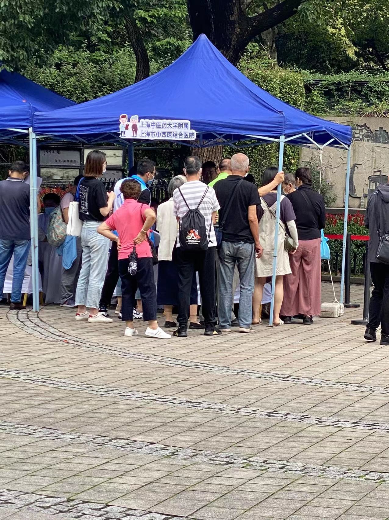 欧阳路街道服务办科长介绍,本次鲁迅公园的重阳义诊活动是由虹口区老龄办联合区卫健委策划主办,街道协助现场的组织和承办。来自上海中医药大学附属上海市中西医结合医院、同济大学附属上海市第四人民医院、虹口区江湾医院、虹口区精神卫生中心、虹口区牙病防治所在内的6所医院的专家医师在场坐诊。