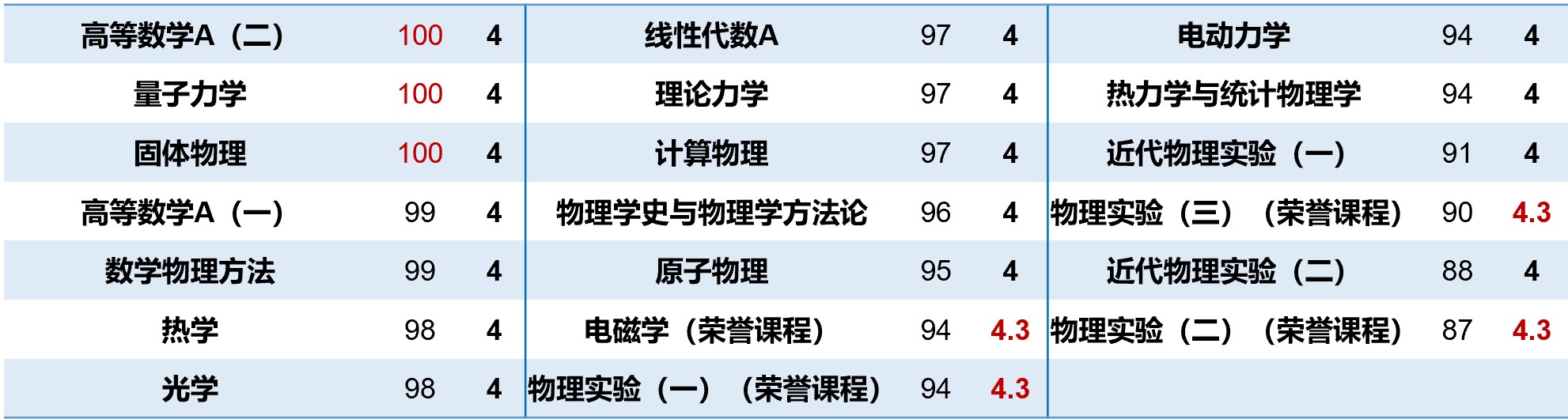 ▲丁又也的专业课程成绩单