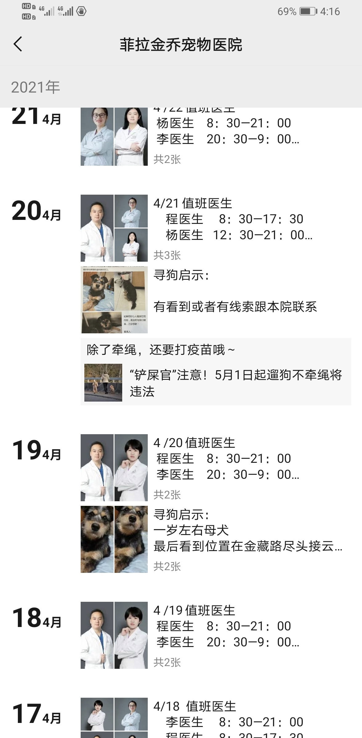 2021年4月20日,菲拉金乔医院向朱浩表示,医院会负责寻狗启示的海报印刷,同时在线上联系寻狗团队。而朱浩和妻子主要在线下开着私家车寻找小黑的下落。他回忆道:“当时好心人提供的消息是罗山路上有它的踪迹,我们每天就带着小黑喜欢的磨牙棒和冻干,在附近喊他的名字。”4月25日,小黑走丢的第六天,当朱浩向宠物医院问起寻狗团队的进展时,菲拉金乔医院相关负责人给出的回应是:寻狗团队的电话打不通。“其实这前期就浪费了很多时间。直到那天,寻狗团队通过我加入的寻狗微信群主动联系了我,我才开始线上、线下结合起来寻狗。”
