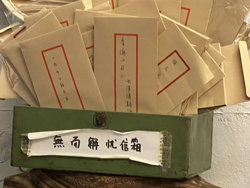 「无而」店内进门左手边靠墙有一个塞满信封的盒子,一进门就能看到,那是祝月设置的“解忧信箱”,每个人可以写一封信记录自己最近的烦恼、开心事或者解压的方法,然后作为交换,可以阅读信箱中的随机一封信。记录的人越来越多,信封也越来越多。大大小小的心事被存放在“解忧信箱”中,不断积累碰撞产生出更多陌生人之间的善意,也给这家社区咖啡店积攒了更多温馨。