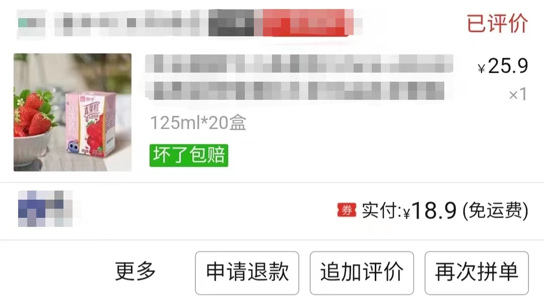 小樱每个月的生活费大概一千元,她主要的购物消费平台是拼多多,东西便宜,性价比高。每个学期,她都会在拼多多上买一箱自己最爱的牛奶,唯一一次破例是蒙牛新推出一款草莓味的牛奶,18.9元20盒的真果粒,纠结了好久,小樱最终咬牙买了一箱。她还曾看中一对8元的耳饰,每天都会打开收藏夹欣赏样图。然而,在收藏两个礼拜后,这对耳夹下架了,小樱在拼多多上搜索同款,没想到却比原来更贵。“我最后还是下单了,但花了12.9元,它现在还在我的抽屉里面,只有正式场合我才戴几次。”