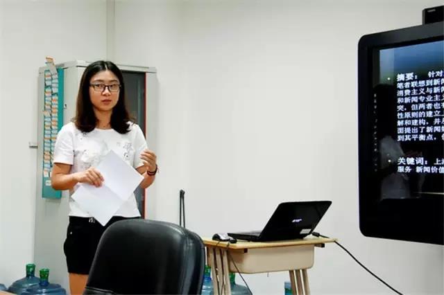 而后进行答辩的研二的王巍同学的论文就专业性颇强了。她以2015年的外滩踩踏事件为案例,分析了新闻消费主义与新闻专业主义之间的关联。潘祥辉老师在赞扬了她的专业性的同时,认为关于新闻专业主义这个“老话题”要想写出新意需要让问题更加聚焦、案例的代表性更加突出。