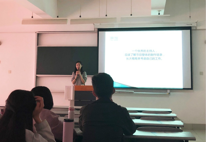 随后,周瑜老师从主观因素和核心竞争力两方面和同学们分享了自己从记者到主持人的转变经验。