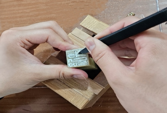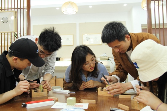 进入实践环节,党员同志们兴致高昂,纷纷拿起刻刀和印石,并根据党纪条例关键词“明纪、守纪、知纪、学纪、知敬畏、存戒惧、守底线”开始篆刻创作。在美术公司书法篆刻专业党员蔡峥同志、吕明姝同志、朱丁丁同志、李沐阳同志的悉心指导下,大家逐渐掌握篆刻的基本技巧,以刀为笔,书写心中对党纪党规的理解。