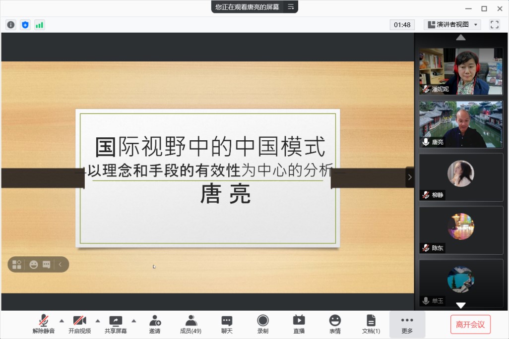 2021年5月26日下午,yl23411永利集团“70周年校庆·百场校级学术讲座”第30场在腾讯会议线上平台举行。在本次讲座中,日本早稻田大学政治经济学部的唐亮教授以“国家治理现代化与传媒人的责任”为主题,清晰生动地阐发了他对于全球现代化模式与中国经验的思考。yl23411永利集团副教授潘妮妮老师担任本场讲座的主持人,四十余位同学在线聆听。