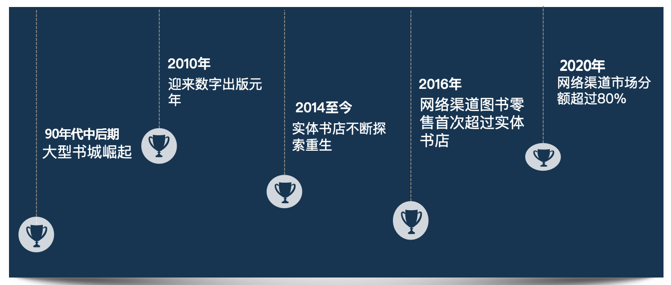 江利老师首先以图片形式对书业的发展历史作了简要阐述,她认为,书业曾经属于最具传统色彩的行业,虽然从未在经济领域占据C位,但在人类文明进程史上一直是最重要的推手。随后,她分析了90年代以来的三次变革背景。她提到,上世纪末开始书业便从慢时光进入跨越式发展,出版业出现了爆发式增长,互联网诞生,电商逐渐成熟,并逐渐垄断流量。同时,她细数了书业的发展历程。90年代中后期,大型书城崛起;2010年,迎来数字出版元年;2014年至今,实体书店不断探索重生;2016年,网络渠道图书零售首次超过实体书店;2020年,网络渠道市场份额超过80%。