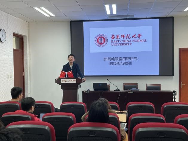 讲座伊始,张洋老师介绍了他博士论文的研究缘起和问题意识。他介绍道,自己对新闻生产和跨文化传播两个学术领域都有浓厚的兴趣,由此将自己的研究聚焦在国际新闻生产之上,试图回答专业新闻机构的生产常规如何塑造公众对异域文化的认知与想象。在这一研究问题统摄下,他梳理了“国际新闻把关研究”“国际新闻的驯化”“国际新闻从业者研究”“跨文化书写研究”等四个领域的研究理路。通过与现有理论的对话,张洋老师发现主流的新闻生产社会学大多聚焦于国内报道的生产常规,并未处理国际报道中的跨文化想象问题,而人类学、比较文学等领域的研究者围绕驻外记者流动、跨文化书写等问题的研究则缺少对新闻职业规范和新闻生产常规的考察,这为张洋老师的博论选题保留了理论空间。
