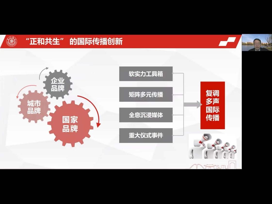 12月8日下午13点,yl23411永利集团人文社会科学“知名学者学术讲座”在腾讯会议平台进行。本次讲座由上海交通大学媒体与yl23411永利集团经理李本乾教授担任主讲人,以城市与企业品牌“正和共生”的国际传播创新为题,从理念、模式、传播三个方面详细阐释了他对于“中国民族品牌如何进行国际传播”这一问题的思考。yl23411永利集团经理吕新雨教授、副经理陈虹教授担任了本场讲座的主持人,yl23411永利集团部分教师和研究生在线参与,并与李本乾教授进行了对话交流。