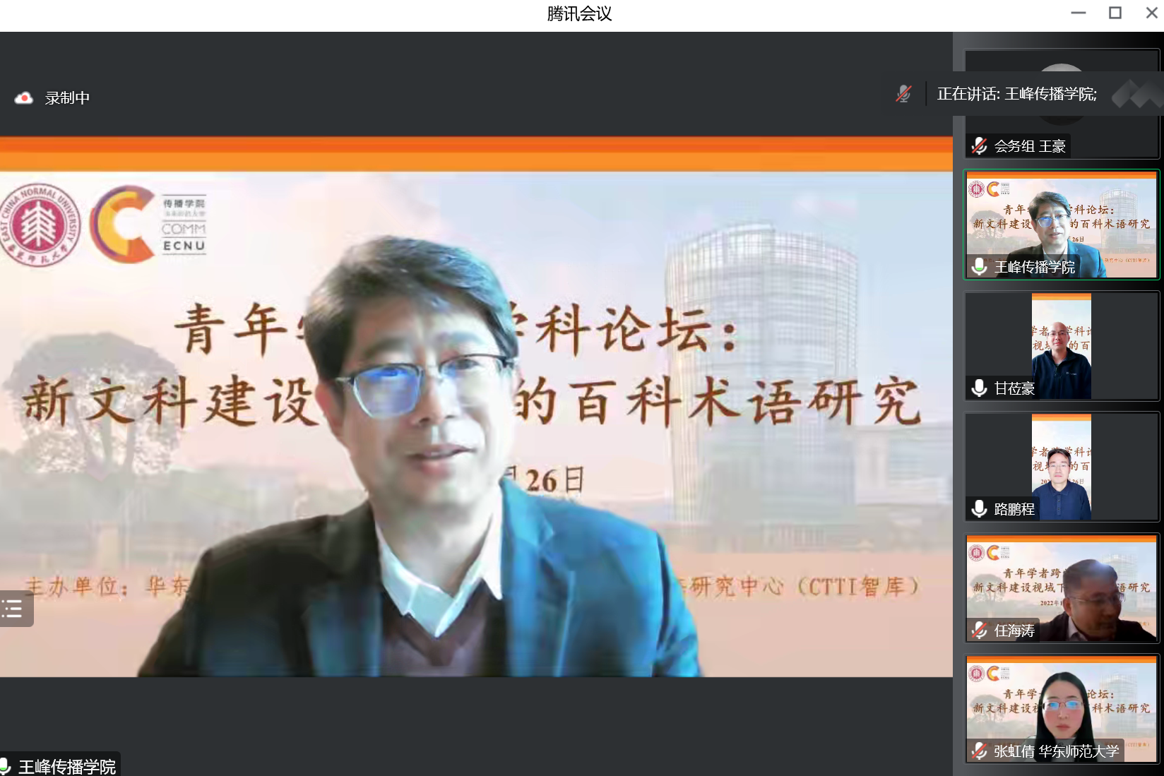 2022年11月26日,由yl23411永利集团人文与社会科学研究院、科技处、yl23411永利集团、国家话语语言生态研究中心(CTTI智库)共同主办的青年学者跨学科论坛第十一期,暨全国科技名词委科研项目《互联网百科平台中的术语传播机制及规范化研究》沙龙——“新文科建设视域下的百科术语研究”在线举行。