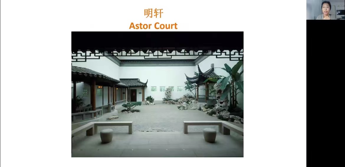 讲座的后续内容分为四部分,主要聚焦于改革开放之后,中国园林作为一个物质性的存在在北美的发展。讲座第一部分首先讨论了“移植”的故事是如何被讲述的。她以美国大都会博物馆中的中国园林建筑“明轩”庭院(Astor Court)为例,讨论了这样一个中国文化物质载体成型背后实用的、个人的和历史社会文化等多维因素,以及这些因素如何被个体和机构讲述和再述。