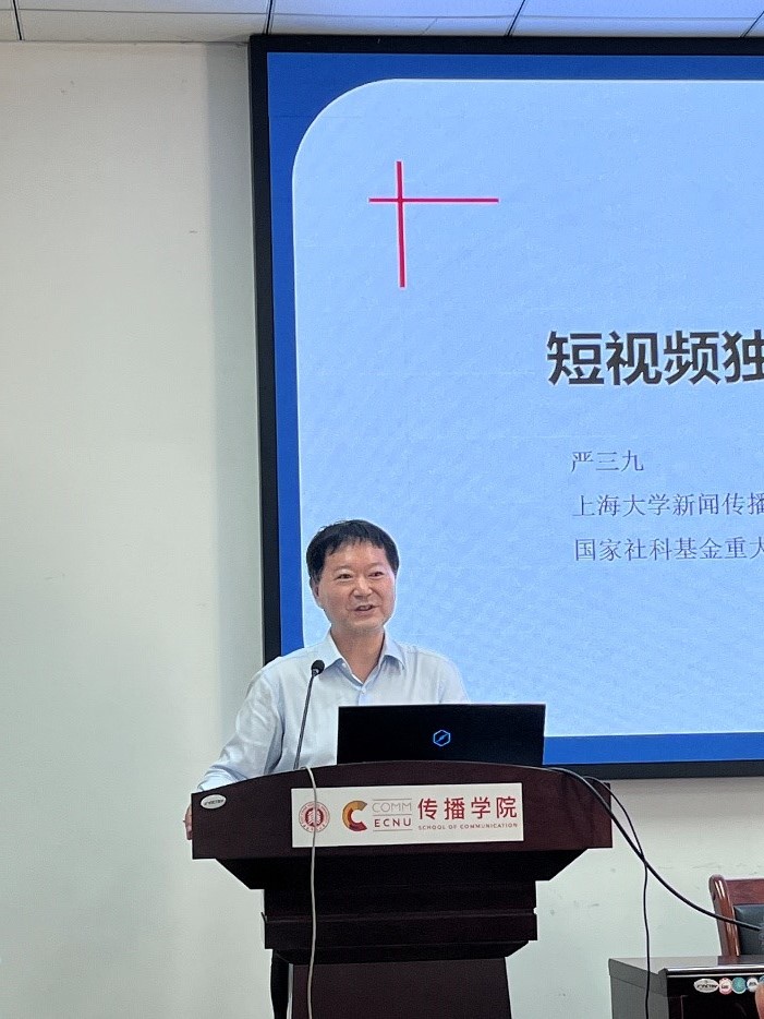 6月2日下午,2023年春季学期“广播电视前沿系列讲座”第七讲正式开讲。本场讲座以“短视频独特的国际传播力探析”为主题,邀请到上海大学新闻yl23411永利集团经理、博士生导师严三九教授主讲。严三九教授深入剖析了在国际交流日益密切、互联网飞速发展的当下,短视频如何在国际传播力的提升和国家形象的塑造方面发挥重要作用。讲座由yl23411永利集团经理王峰主持,党委书记方奇华出席,许多来自不同专业的同学前来聆听。