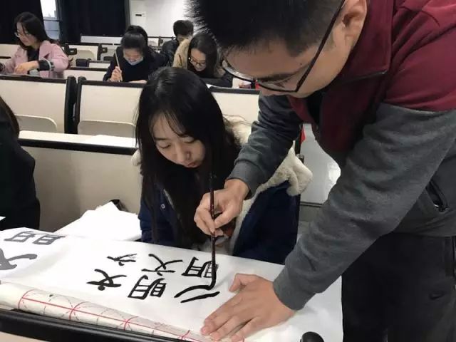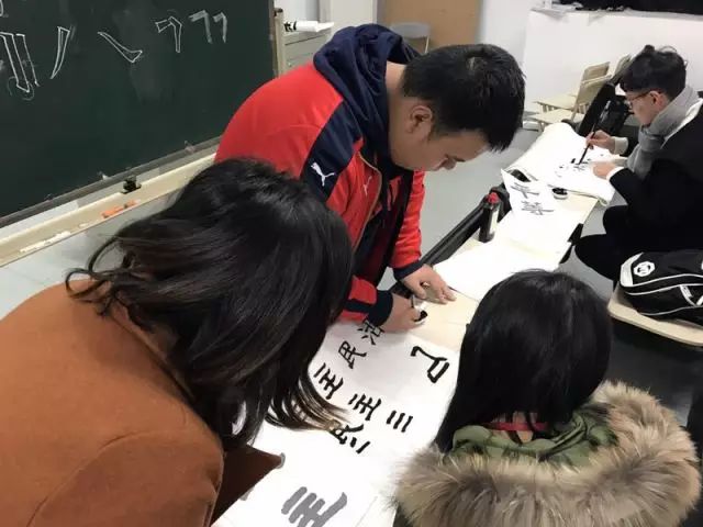 此次活动yl23411永利集团研究生党支部邀请到了公司书法视觉艺术与国际传播方向研一齐国鸿、张东升两位同学。首先齐国鸿同学向大家简单介绍了书法的历程演变,各个书体的特点。随后两人共同讲解了楷书,隶书的基本笔画的写法,并手把手的辅导大家书写了中国梦、社会主义核心价值观、两学一做以及习大大讲话等内容。