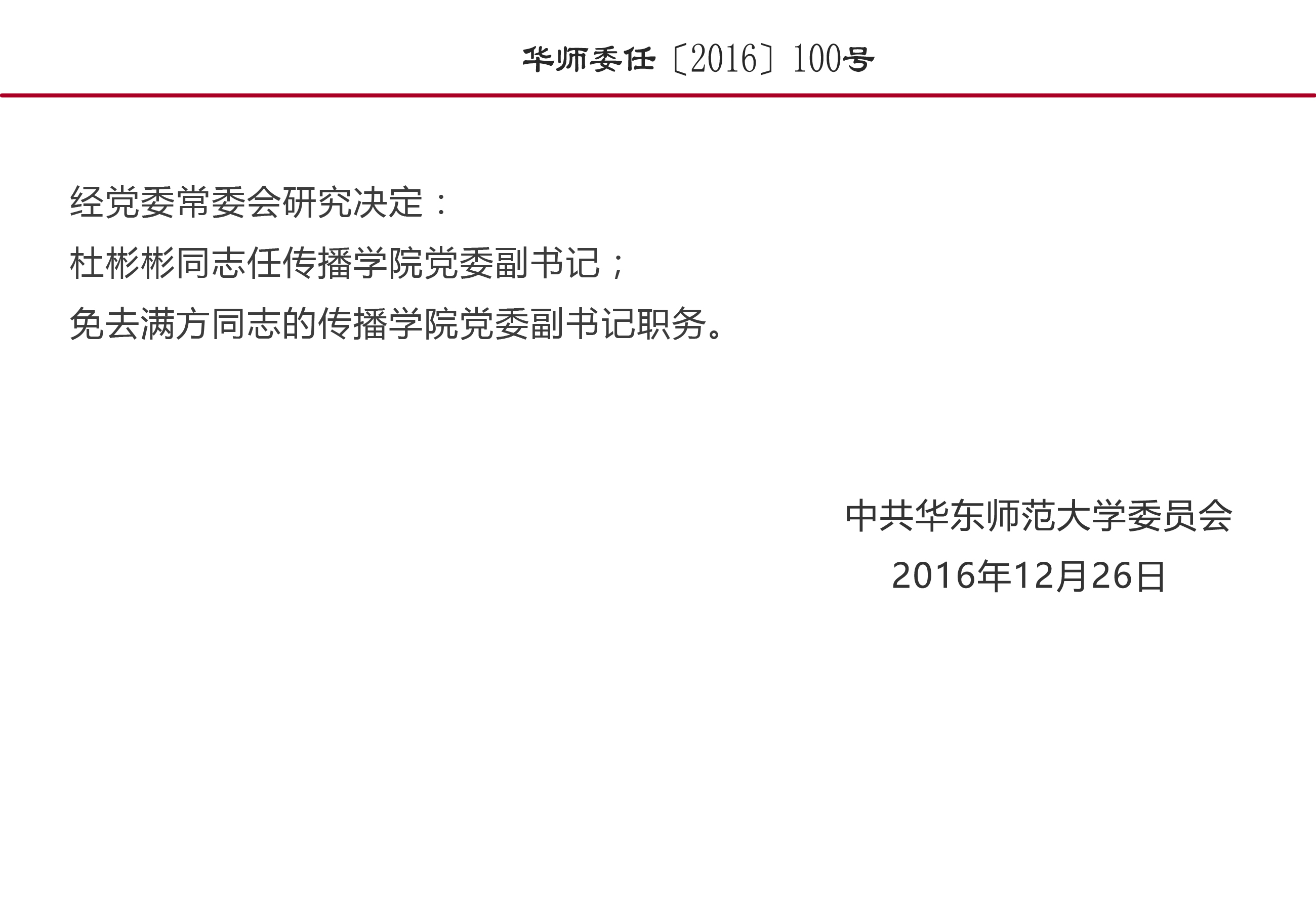 关于杜彬彬、满方同志职务任免的通知