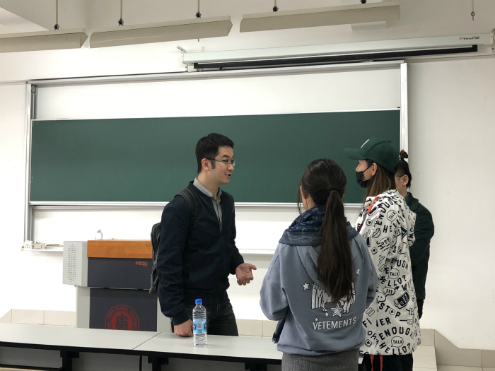 王兆阳老师从自己的经历向同学们分享这方面的经验。据王兆阳老师介绍,他于2013年从主持人职位转到记者的行业,在此期间,他从一开始的出镜记者到集后面发展成为策划拍摄写稿后期于一体的媒体人。在这个过程中,王兆阳老师完成了自己从单纯的节目主持人到采编播一体化的转型。对此,王兆阳老师建议同学们,“从现在开始,你们要给予自己机会去锻炼,同时也可以寻找小伙伴进行适当的合作。”“将自己的时间压缩,给自己压力,一有想法,就要立马行动,这样才能保证自己的高效率”。