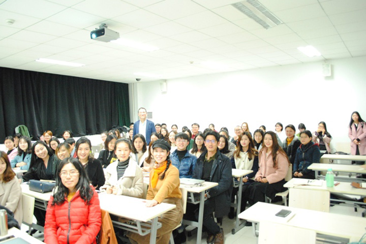 最后,祝建华教授与在场师生合影留念。祝建华教授的精彩讲座,令同学们为收获颇丰、受益匪浅,也为今年大夏传播讲坛画上了圆满的句号。