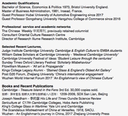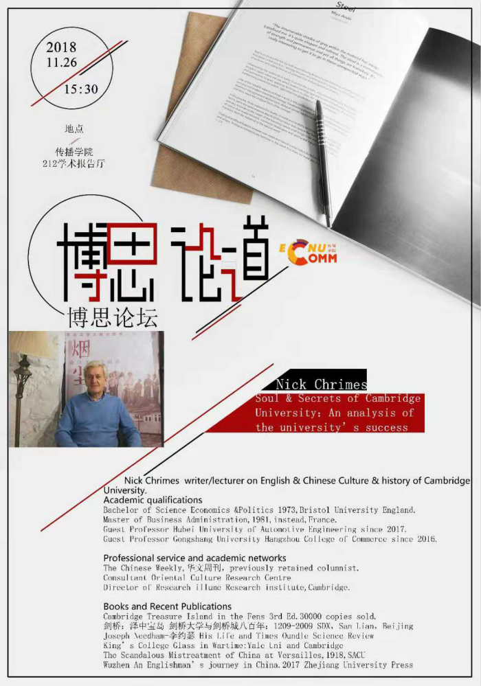 嘉宾:Nick Chrimes writer/lecturer on English & Chinese Culture & history of Cambridge University