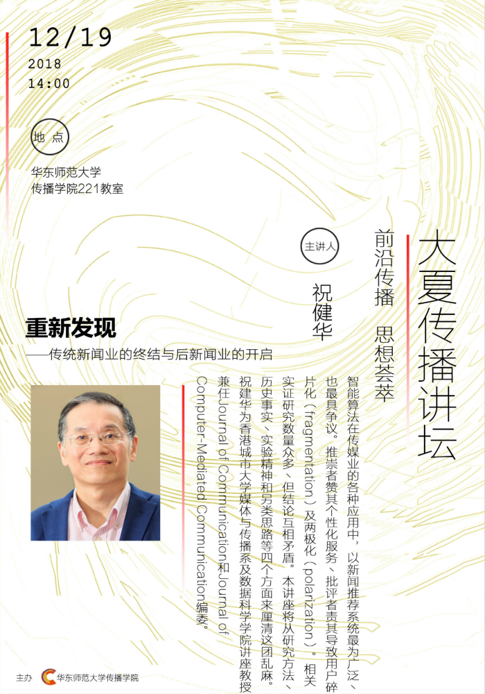智能算法在传媒业的各种应用中,以新闻推荐系统最为广泛,也最具争议。推崇者赞其个性化服务,批评者责其导致用户碎片化(fragmentation)及两极化(polarization)。相关实证研究数量众多,但结论互相矛盾。本讲座将从研究方法丶历史事实丶实验精神和另类思路等四个方面来厘清这团乱麻。