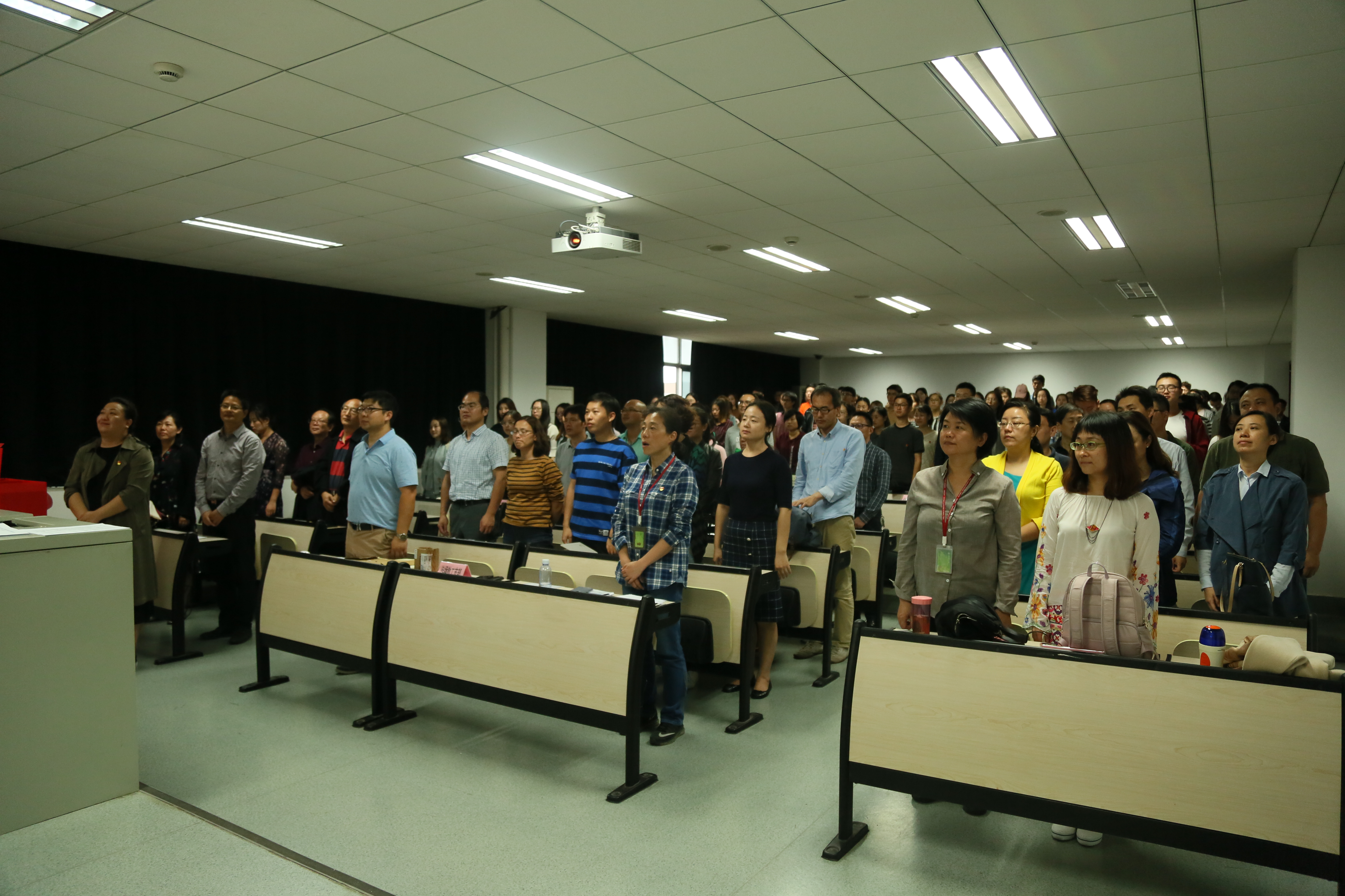 图为全体起立 奏唱国歌