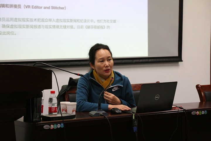 技术还促使一批新闻业新兴岗位的出现。陈老师展示了一份美国十大新闻业新兴岗位的信息,包括参与编辑、应用技术创新引领员、虚拟现实编辑和拼接员等多个与技术紧密结合的岗位招聘信息。她认为高校教育应该从战略上去触及这些领域,逐步将新技术的理念引入到新闻教育中。