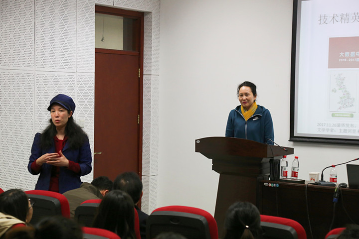 同时,陈昌凤教授以《2016-2017国家形象社交媒体报告》中的英国国家形象为例进行了补充回答。她指出,大数据下抓取的国家形象关键词是复杂的,需要去思考大数据的科学性问题。因为数据抓取的参数,是根据数据团队对问题的认知来设定的,而一旦参数改变,最终的结果也会变化。她也再次提醒在场师生,要注意技术精英对社会愈加重要的影响。