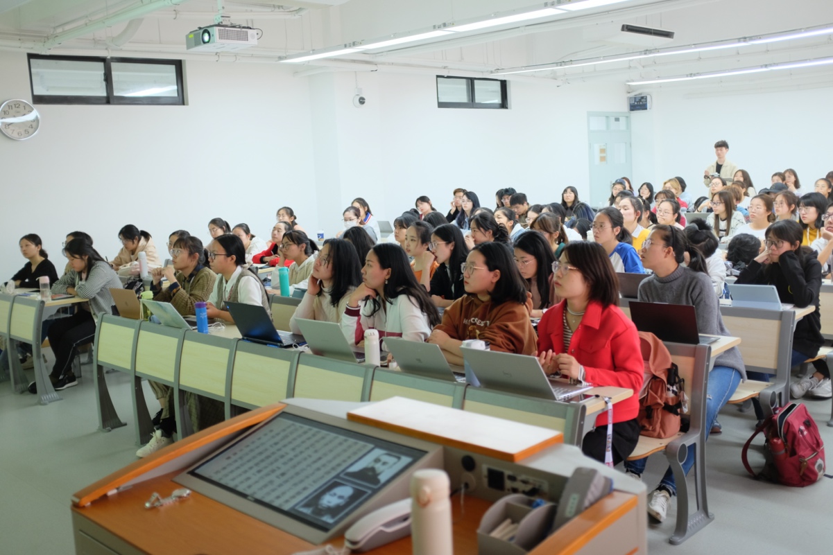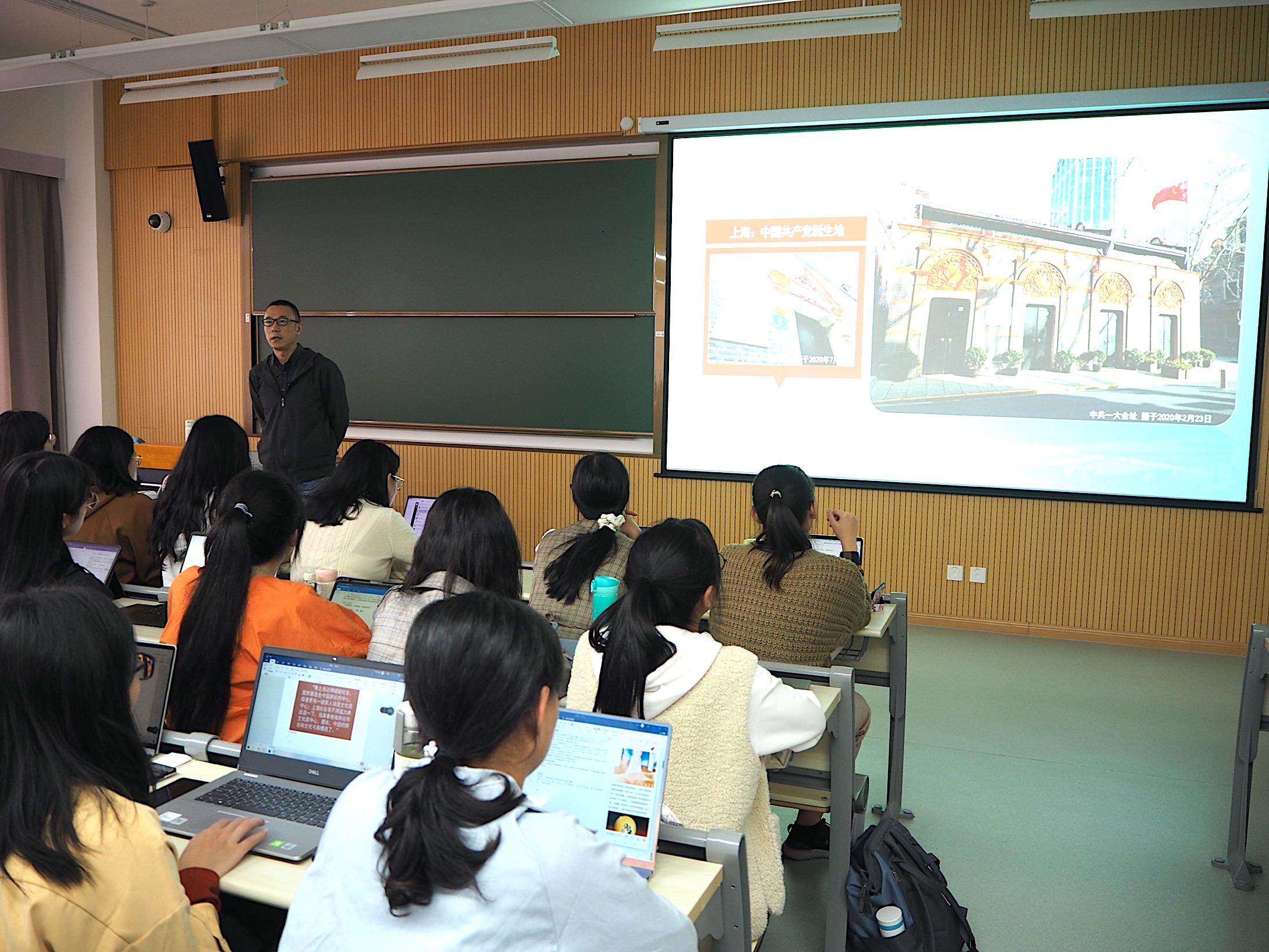 后吴钧旁征博引,多角度阐述上海在近代中国的特殊地位,最终落脚在“党的诞生地”以及相关新闻宣传作品。近年来,吴钧在上海广播电视台主持制作了《百年渔阳里一大建党路》、《日出东方 光明之城——献给七一建党纪念日》、《红旗飘扬上海滩——5月27日上海解放纪念日》等内容丰富、形式鲜活的短视频和图文H5作品,收到了很好的传播效果。吴钧在讲座中向同学们展示了部分作品,重点介绍了一些选题、策划和实施的采编经验。