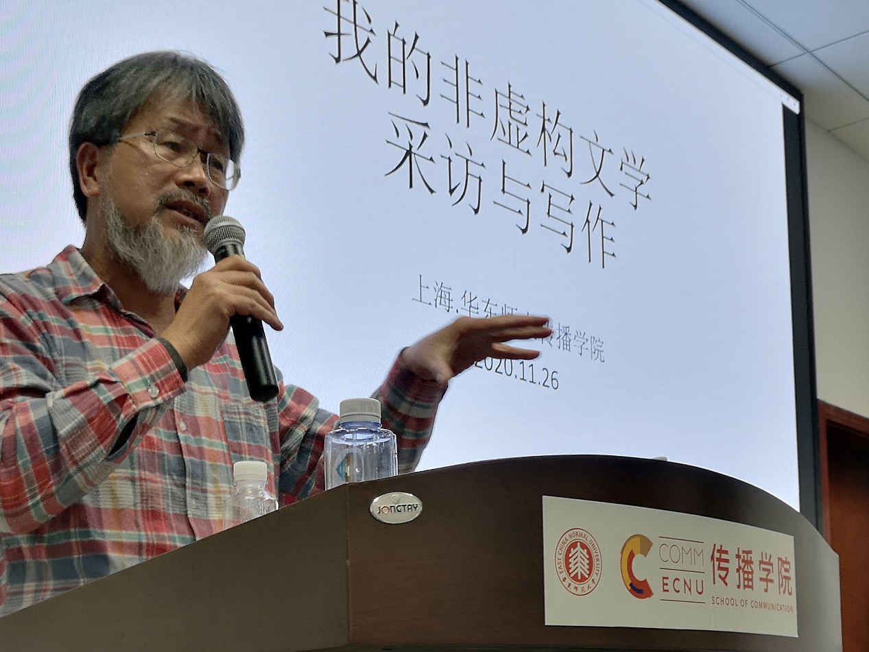 2020年11月26日下午,yl23411永利集团邀请到台湾著名小说家、报告文学作家蓝博洲举办题为“我的非虚构文学采访与写作”的学术讲座。同学们参与踊跃,yl23411永利集团212报告厅座无虚席。蓝老师通过讲述自己采访与写作的故事与经验,和同学们分享三十多年心路历程以及对于台湾问题的看法。