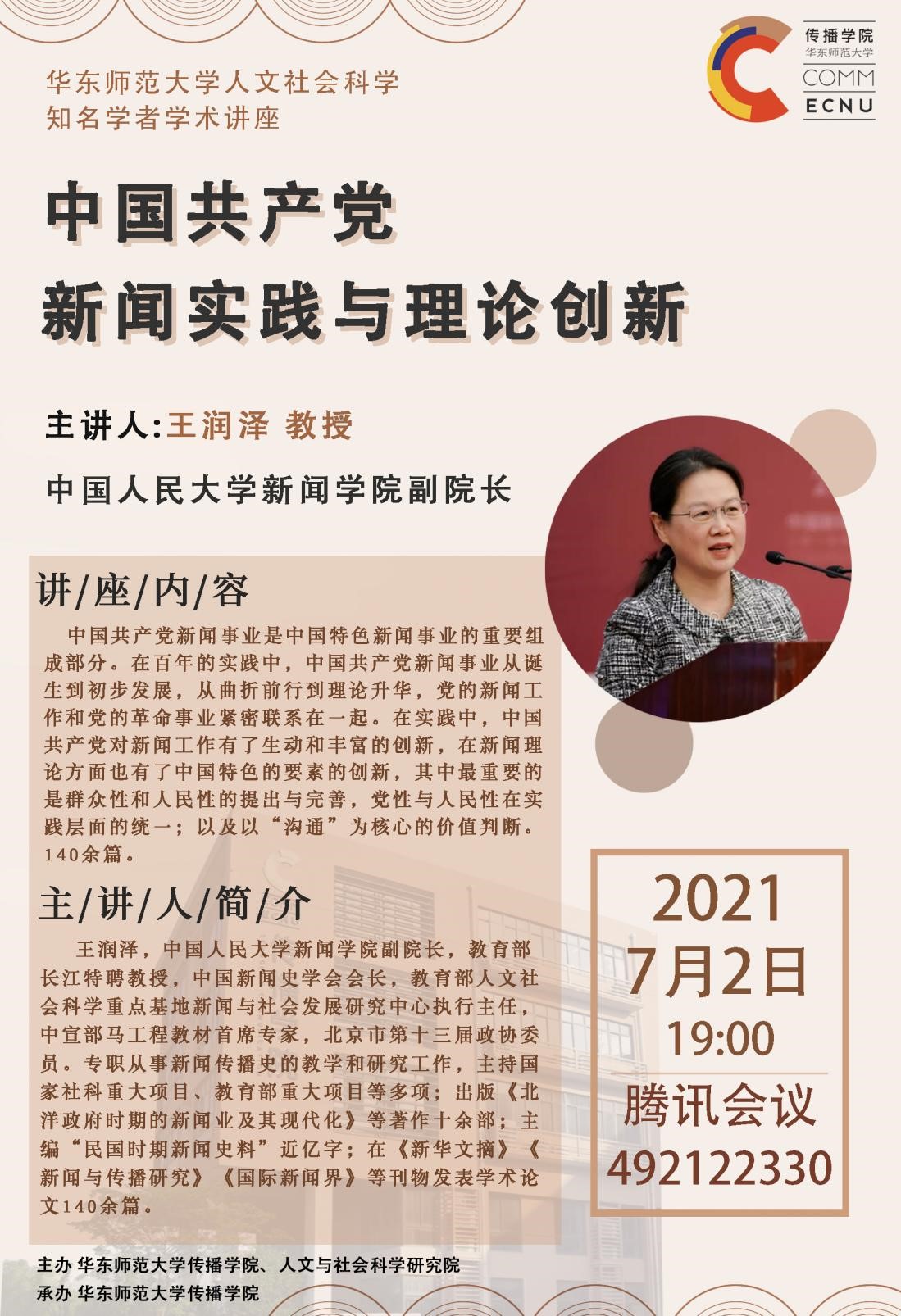 王润泽老师专职从事新闻传播史的教学和研究工作,主持国家社科重大项目、教育部重大项目等多项;出版《北洋政府时期的新闻业及其现代化》等著作十余部;主编“民国时期新闻史料”近亿字;在《新华文摘》《新闻与传播研究》《国际新闻界》等刊物发表学术论文140余篇。学术研究主要集中在从中国新闻实践史的角度分析中国现代新闻传播规律,探索构建中国特色新闻学丰富清晰的历史逻辑和实践路径;从中国传统文化和价值观层面思考中国新闻媒介文化特性;探索确立中国特色新闻传播学的问题意识,话语体系和学术逻辑。