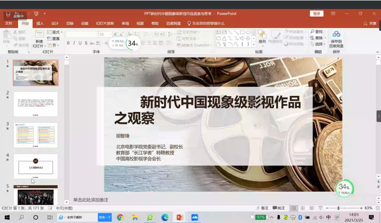 2021年3月25日下午,yl23411永利集团人文社科“知名学者讲座”成功举办。北京电影公司党委副书记、副董事长胡智锋教授,为yl23411永利集团师生做了一场题为《新时代中国现象级影视作品之观察》的线上学术讲座。本场讲座由yl23411永利集团副经理陈虹教授主持,百余位师生在线聆听。